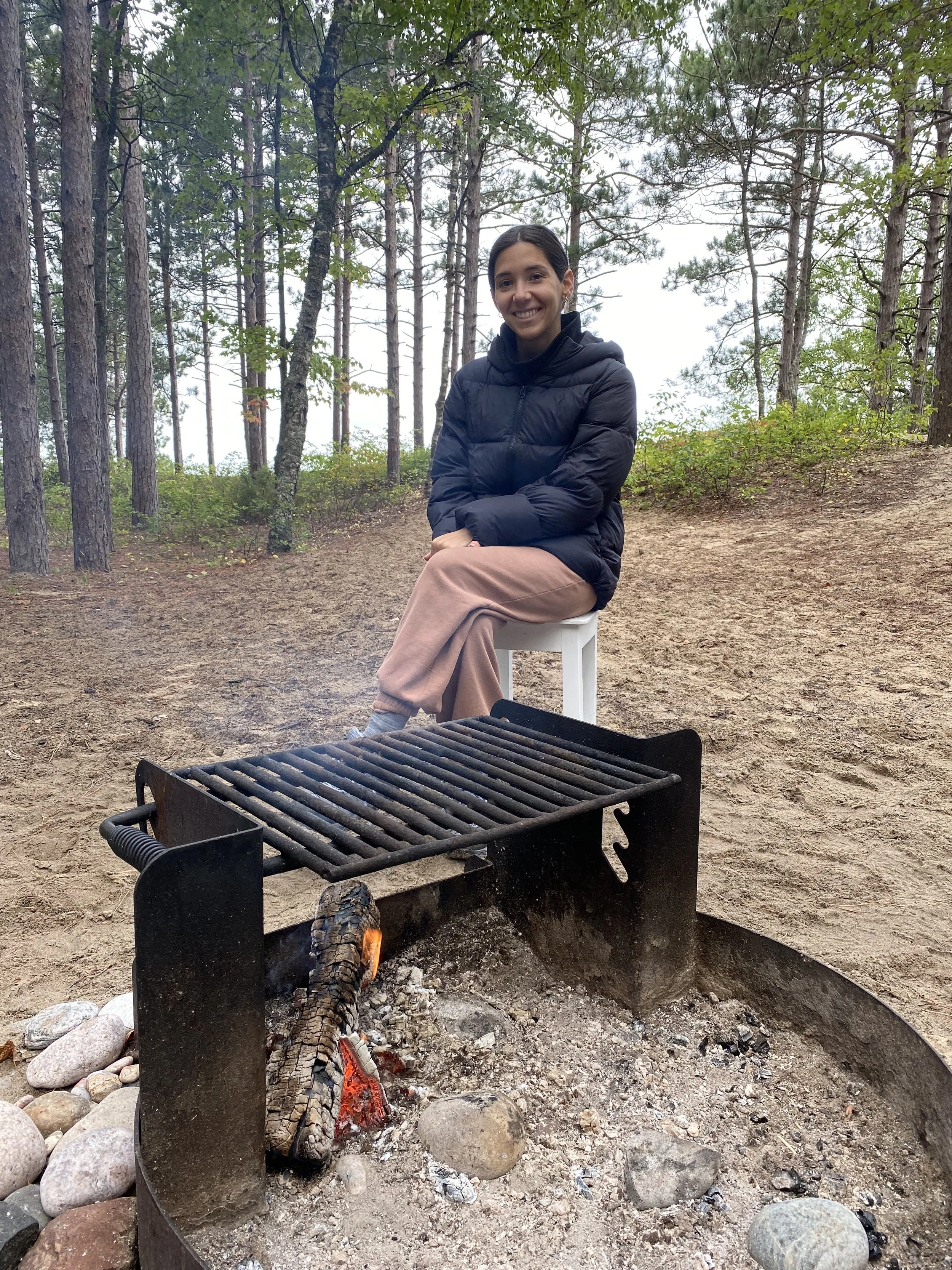 For me, that usually means being outdoors. Whether I’m volunteering in the local woods carving out new hiking trails, learning hands-on skills like building a fire pit, watching over monarch chrysalises as they prepare for their journey from Michigan to Mexico, or leading a yoga class, I find energy and balance in staying connected to nature and community.